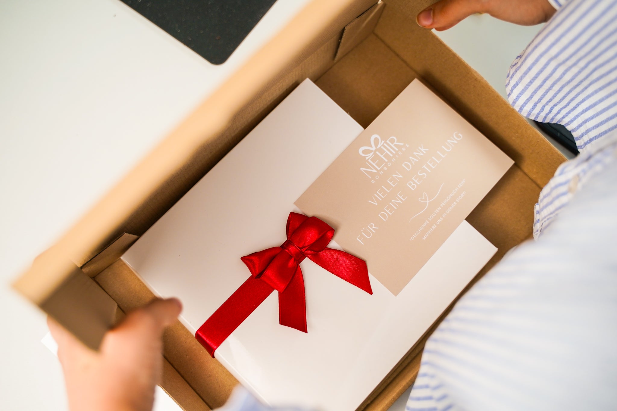 Damit dein personalisiertes Produkt unversehrt bei dir ankommt, wird es von unserem Team sorgfältig und sicher verpackt. Gleichzeitig achten wir darauf, dass jedes Paket mit viel Liebe gestaltet ist – so wird schon das Auspacken zu einem kleinen Highlight.